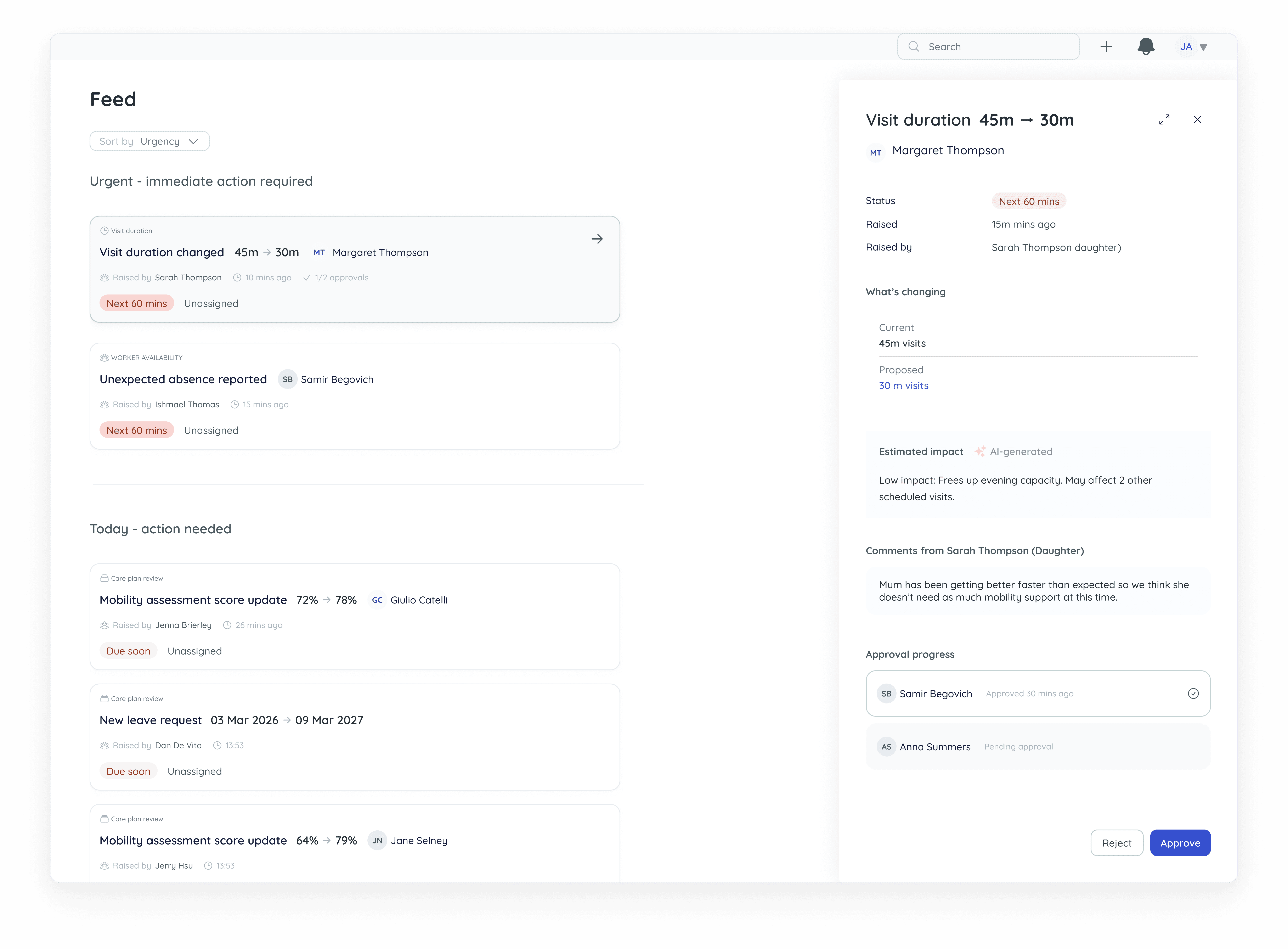 Feed brings together updates, risks and changes across your service, so teams can act earlier with the right information.